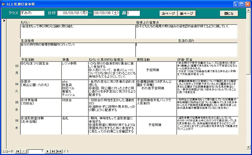 - 週間指導計画<印刷帳票>